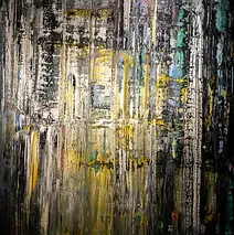 His technique consists of multi-layering oil paint with a squeegee (spatula), vertically and horizontally applied on the surface while the paint is still wet. The overlapping hues and shapes create a visual depth of space, resulting in vibrant works full of texture and rhythm.